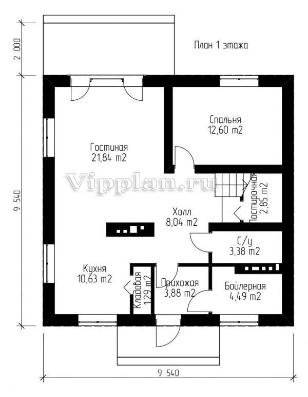 | Размеры дома: | 9.5м×9.5м |