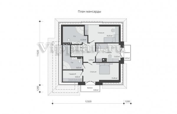 | Размеры дома: | 12.32м×12.32м |
