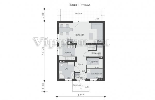 | Размеры дома: | 8.02м×10.02м |